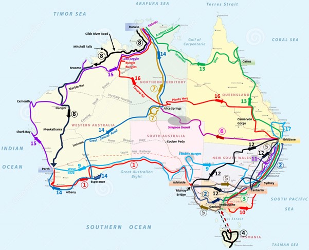 Our touring lifestyle takes us to all corners of Australia. The map below shows our completed and touring / camping trips since retiring in mid 2022, all while never missing a workout. There is still a lot to see. Australia is a big country.